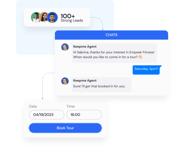 Request your demo with a member of the team or sign up to our immersive demo experience and you’ll step straight into a live conversation with 'Olivia' - one of our AI Sales Agents. Quiz her about her capabilities and then ask her to schedule your demo call with one of the team - exactly the same way your gym prospects would book a tour or trial!
