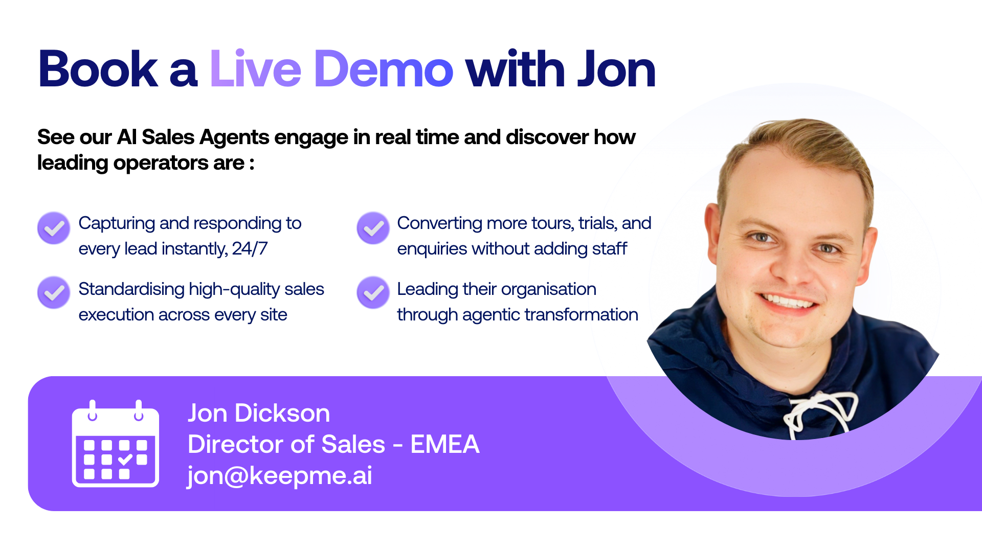 Skip the theory. Come watch Antares drive membership sales live across a variety of channels - including voice calls - with Jon Dickson demonstrating actual sales flows showing how fitness operators worldwide are converting more leads into booked tours and trials with our AI agents.